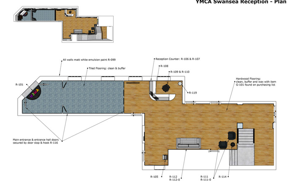 YMCA is an organisation that supports young people by offering recreational activities in designated spaces such as gyms, dance studios, theatres, dojos, and recording studios. Authentic Attribute was tasked to design the reception area of YMCA Swansea. Originally displaying magnolia walls with worn-down furniture, the room required a face-lift. The questionnaire collected from the staff highlighted the high footfall and diversity of the place. Simplicity, neutral colours, and comfortable furniture created a space that is suitable for everyone.